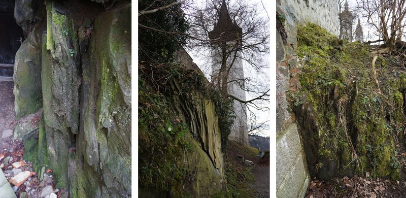 «… Einerseits besteht der Untergrund aus Sandstein, was für das Projekt zwar geeignet, aber sehr kompakt und schwer abbaubar ist. Daneben finden sich auch prächtige Zwischenschichten aus weichem Mergelgestein mit Kohleschichten…» «… Zu bedenken gibt auch die Stabilität der Museggmauer und der Türme, die über dem Projekt zu liegen kommen …»